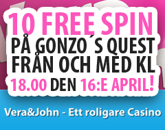 Utöver dessa free spins kan du också få 10 gratisrundor på Gonzo's Quest hos Vera&John, samma som igår! Men bara när du öppnar ett konto hos Vera och John via bannern nedan!
